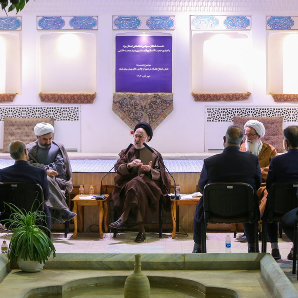 در این دیدار که در محل بیت تاریخی شهید صدوقی برگزار شد، سید محمد خاتمی طی سخنانی با تأکید بر شناخت دقیق مشکلات برای رسیدن به صورت راه حل واقعی، اظهار کرد: اگر معتقدیم اسلام جاودانه است باید به تمام پرسش ها و نیازهای روز به روز نو شونده پاسخ دهد. البته ما همان انتظاری را که از علم داریم از دین نداریم، ولیکن با توجه به اینکه انسان تنها موجودی است که در پی یافتن پاسخ به سوالات و برآوردن نیازهای خود است، دین جاودانه دینی است که پرسش و پرسشگری را که در متن وجود آدمی است به رسمیت بشناسد و راه را برای رفع نیازها باز کند.