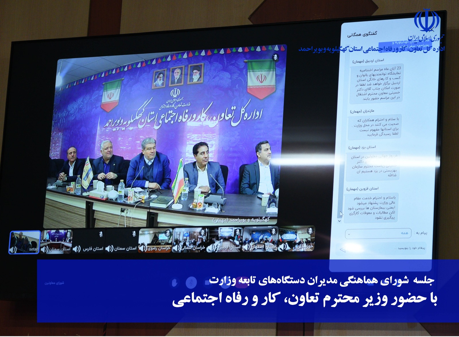 ابراهیم مهرجو،مدیرکل تعاون، کار و رفاه اجتماعی کهگیلویه و بویراحمد، در نشست وبیناری شورای هماهنگی مدیران دستگاههای تابعه وزارت کار با حضور وزیر، بر لزوم همکاری و همراهی همهجانبه مدیران استانی برای تحقق راهبردهای کلان وزارتخانه در حوزههای تعاون، اشتغال و رفاه اجتماعی تأکید کرد. در این نشست موضوعاتی چون بیمهشدگان تأمین اجتماعی، کالابرگ الکترونیک، دهکبندی یارانهها و طرح محلهمحور بهزیستی مورد بررسی قرار گرفت.