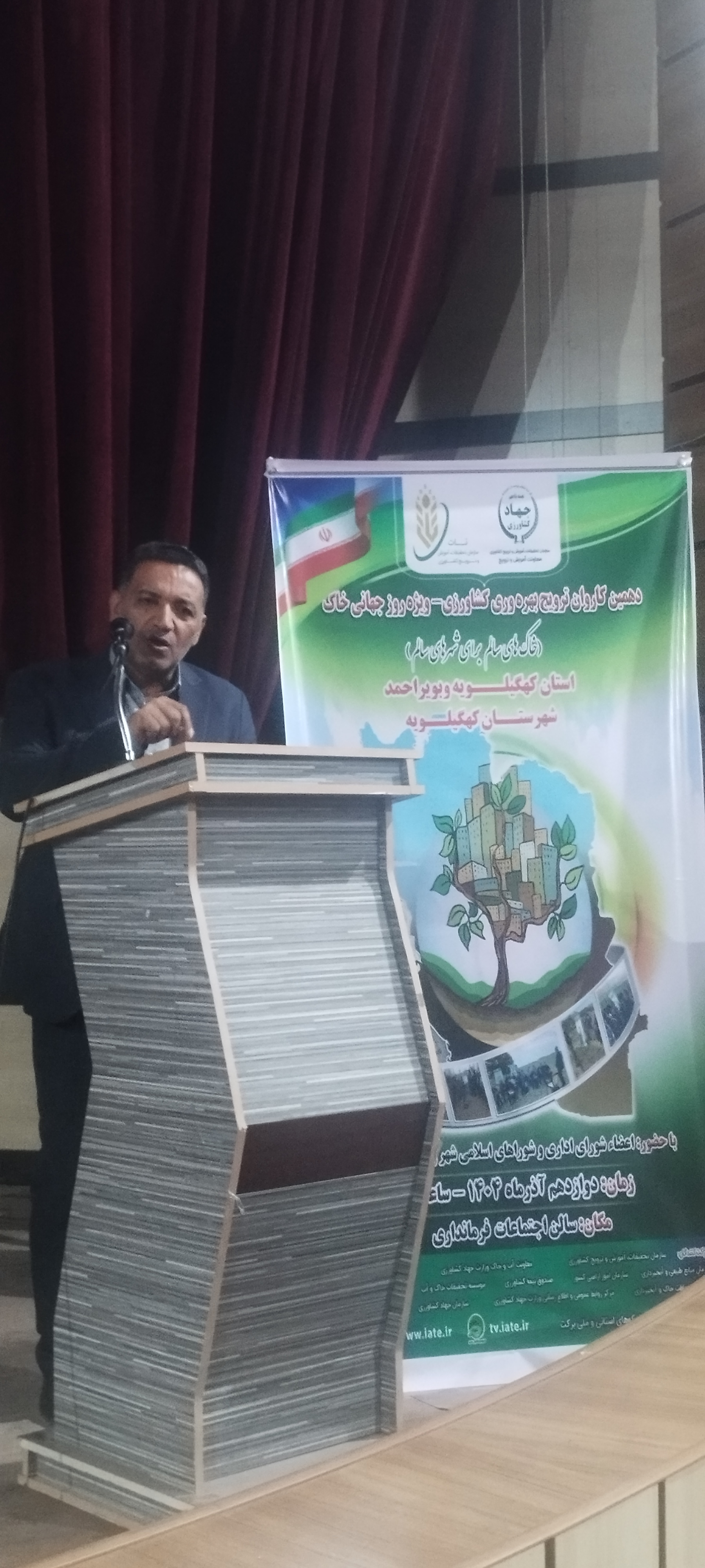 به گزارش افتونیوز؛جلسه کارگروه گرامیداشت روز جهانی خاک با شعار خاک سالم برای شهرهای سالم با حضوربهروز واعظی مدیر تحقیقات و آموزش وزارت جهادکشاورزی فرماندار کهگیلویه معاونین و بخشدار مرکزی مدیران شهرستانی در سالن اجتماعات فرمانداری برگزار شد.