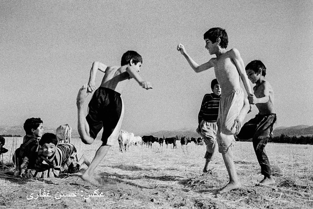 کودکان عشایری در زمان چرای دامهایشان مشغول بازی محلی- الختور- هستند. 1373